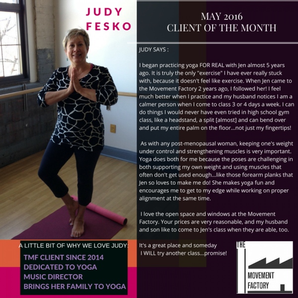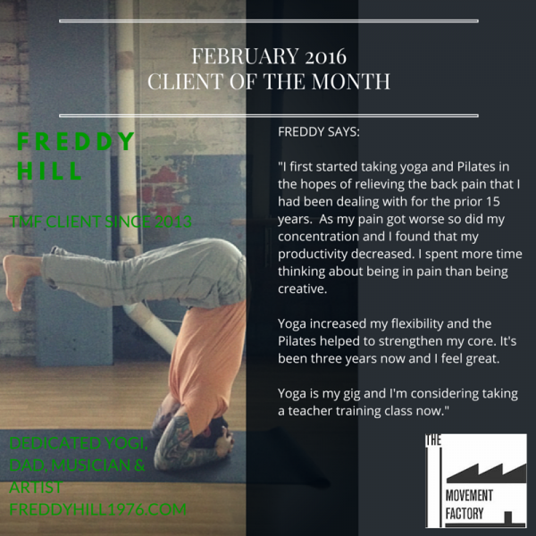 "Every day I feel gratitude that circumstances were such that I found The Movement Factory. Thank you for being a friend." -D.A. 2016